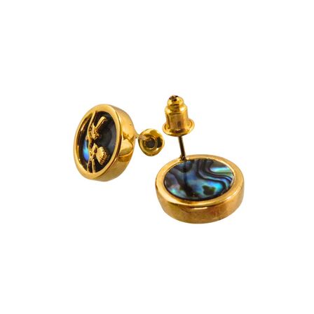 Fantail Round Stud Earrings with Paua and Gold