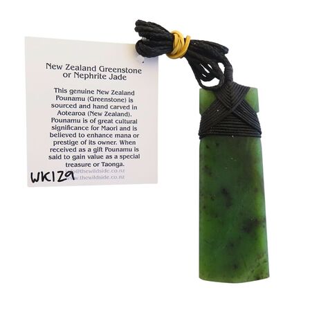 A stunning New Zealand Greenstone Toki with black waxed chord that is adjustable.