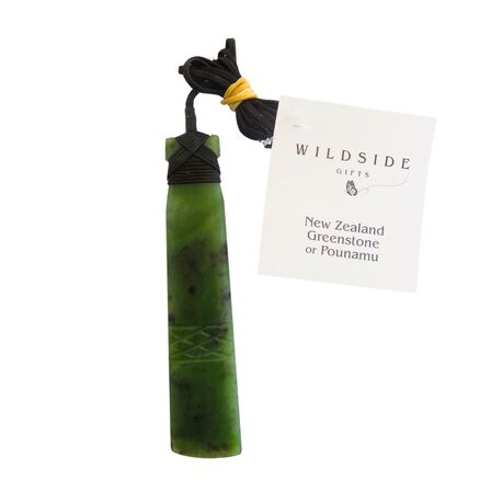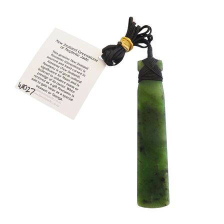 A beautiful large New Zealand Greenstone Toki with a pattern engraved on the front, bound with waxed chord that is adjustable.